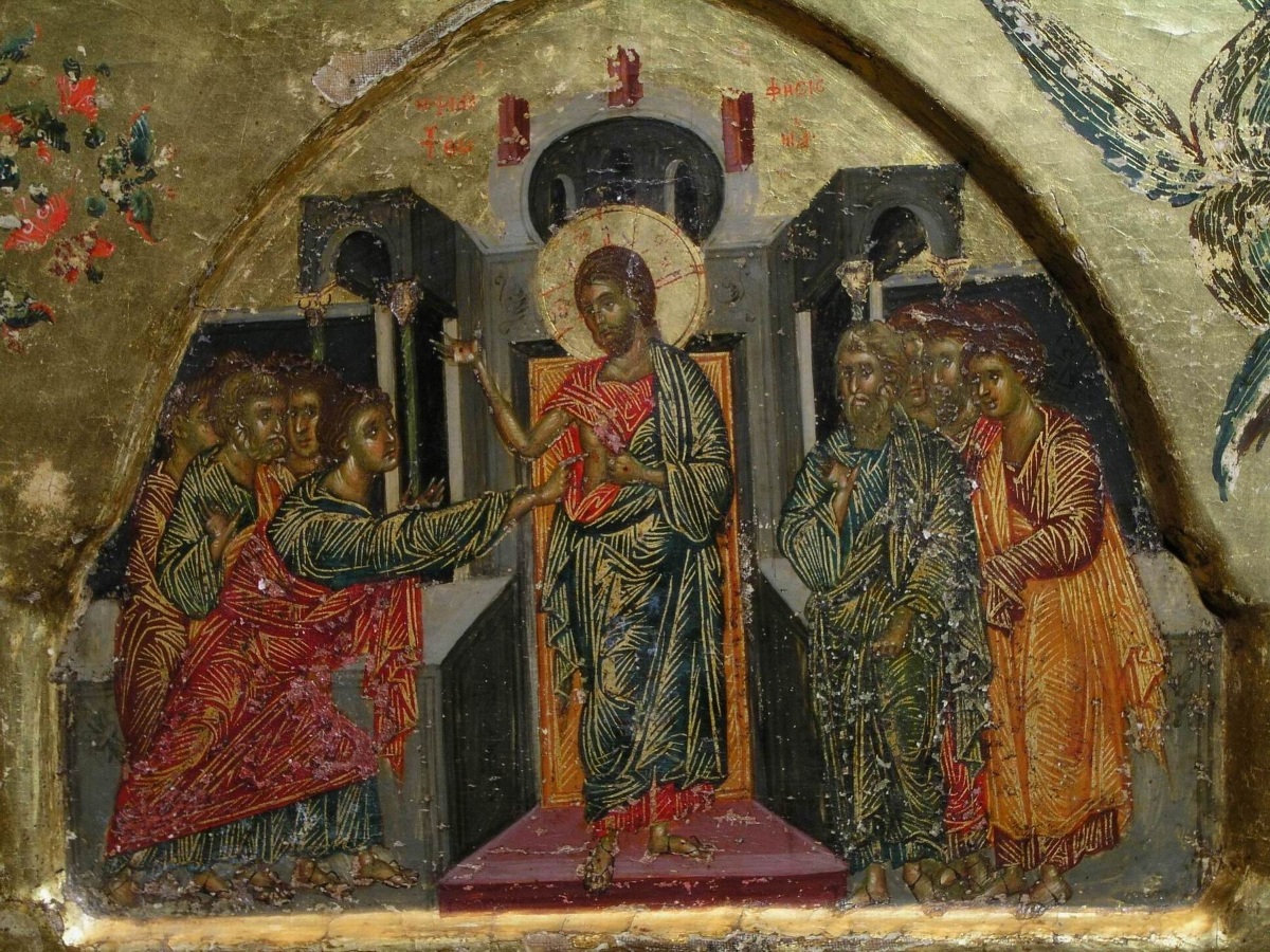 Но съ осмымъ днемъ по Пасхѣ уже само собою соединяется еще воспоминаніе о явленіи Іисуса Христа ученикамъ Своимъ въ осмой день по воскресеніи и объ осязаніи спасительныхъ язвъ тѣла Его Ап. Ѳомою; отсюда и – болѣе другихъ употребительное у насъ – названіе Антипасхи – недѣлею св. Ѳомы, или Ѳоминою. Это примѣчательное событіе – какъ очевиднѣйшее доказательство истины воскресенія Христова, и какъ опытъ неизреченной любви и снисхожденія Воскресшаго Господа къ слабости сердца человѣческаго, коснаго къ безусловной вѣрѣ и въ самыхъ ученикахъ Его – составило потому самому главный предметъ пѣснопѣній Церковныхъ въ продолженіе новой Недѣли. Святая Церковь, напоминая намъ о явленіи Господа дневнымъ чтеніемъ изъ Евангелія, приглашаетъ всѣхъ съ благодареніемъ воспѣть Благоволившему – въ увѣреніе наше – дать осязать себя: Человѣколюбче, веліе и безприкладное множество щедротъ Твоихъ: яко долготерпѣлъ еси, отъ іудей заушаемь, отъ апостола осязаемь, и отъ отметающихся Тебе многоиспытуемь: како воплотился еси? како распялся еси, Безгрѣшне? Но вразуми ны, яко Ѳому, вопити Тебѣ: Господь мой и Богъ мой, слава Тебѣ! (Стих. на Госп. воззв.).