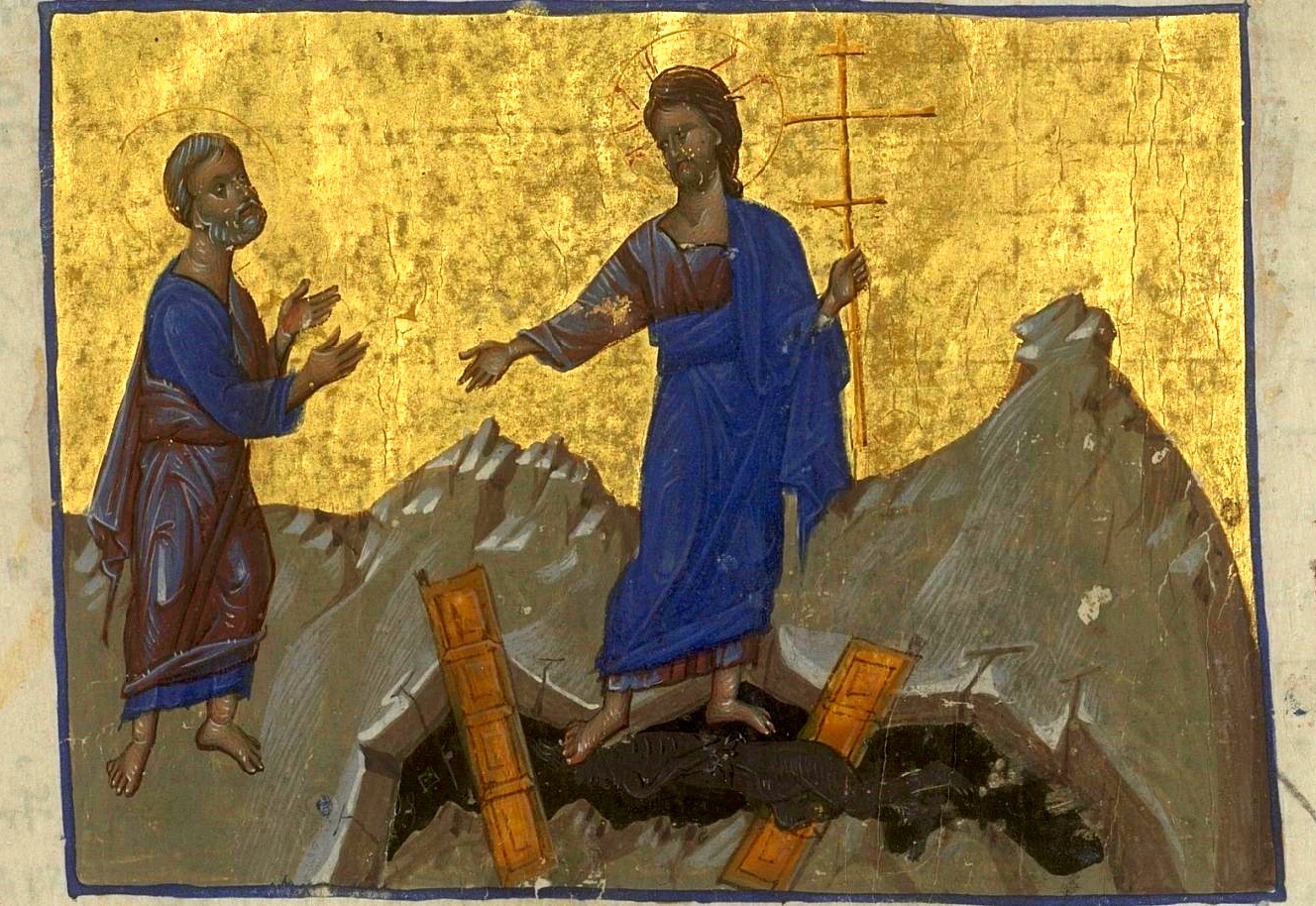 Христос и Иов. Книга Иова. Посл. четв. XIII в. (РГБ. Греч. 382, л. 1).