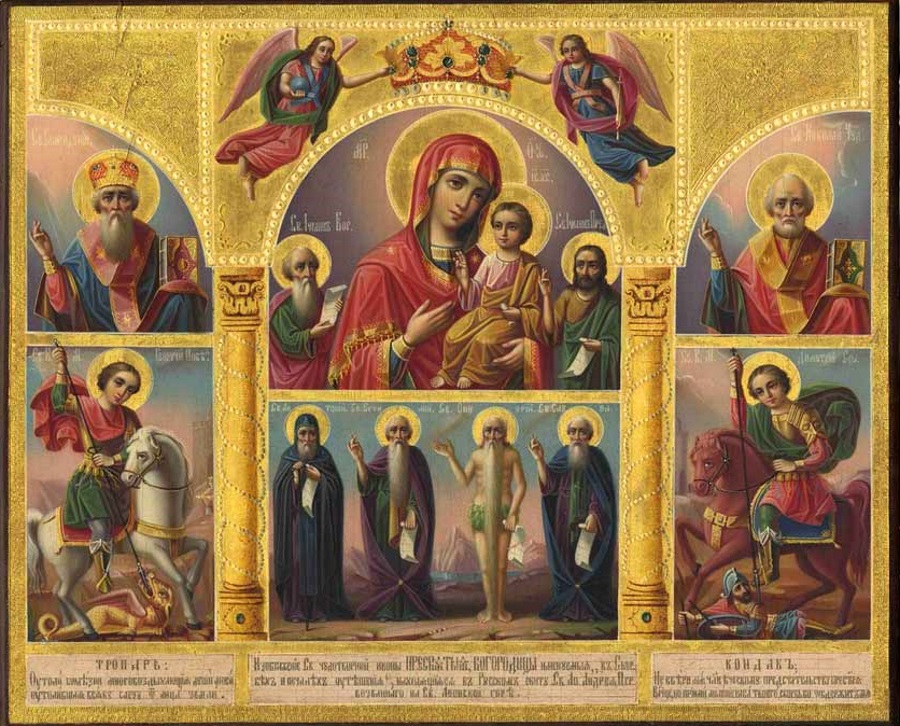 Съ дозволенія Святѣйшаго Синода, іеромонахъ Аѳонской горы, русскаго скита, св. Ап. Андрея Первозваннаго, Іезекіиль, производивній въ Россіи сборъ добровольныхъ пожертвованій на этотъ монастырь, посѣщалъ многія мѣста Екатеринбургскаго уѣзда. По личному моему приглашенію, іеромонахъ Іезекіиль согласился изъ Истокскаго села принести святыню и въ Ларинское село. И вотъ іюля 8 этаго года я, съ своими прихожанами, встрѣтилъ за четыре версты отъ села съ иконами изъ мѣстной церкви: 1) малый серебряный крестъ съ частію Св. Животворящаго Креста Господня; 2) икону Божіей Матери, именуемую – въ скорбѣхъ и печалѣхъ утѣшеніе, въ серебряной позлащенной ризѣ, съ такимъ же вѣнцомъ, украшеннымъ драгоцѣнными камнями и 3) мощами св. Ап. Андрея Первозваннаго и великомученика Пантелеимона. Послѣ литургіи, икону съ св. мощами монахи Аѳонской горы носили по приходу и для желающихъ служили молебны въ домахъ и около домовъ. Удовлетворивши духовною потребностію моихъ прихожанъ, монахи понесли святыню до Боевскаго села, которое въ 7 верстахъ отъ Ларинскаго. Я рѣшился самъ проводить икону до Боевскаго села. Когда святыню несли по селу, я не запрещалъ больнымъ прихожанамъ садиться на дорогу, по которой должна была пройти святыня. Въ числѣ больныхъ былъ сынъ прихожанина – крестьянина Стефана Пахоміева Хромцова, Николай, разслабленный 2½ года и его жена, больная 5 лѣтъ. Съ 8 іюля и до 10 ноября я ничего не слыхалъ особеннаго о посѣщеніи иконы Божіей Матери. Въ одно воскресенье ноября мѣсяца, я увидѣлъ разслабленнаго сына прихожанина въ церкви совершенно здоровымъ. Не вѣря какъ будто своимъ глазамъ, я, послѣ литургіи, спрашиваю своего прихожанина, онъ же и сторожъ церковный: это не сынъ ли твой и если сынъ, то давно ли онъ у тебя здоровъ? Онъ отвѣчалъ мнѣ: съ тѣхъ поръ, какъ побывала здѣсь Божія Матерь. Что же ты мнѣ, говорю я ему, до сихъ поръ не сказывалъ объ этомъ? Значитъ Божія Матерь исцѣлила твоего сына? Да, говоритъ онъ, я крѣпко вѣрю, что Богородица исцѣлила моего сына. А если я не сказывалъ тебѣ, батюшко, объ этомъ долго, такъ боялся, чтобъ сына моего не одивовали и онъ не захворалъ бы опять. Я говорю ему: тайну цареву надобно хранить, а дѣла Божіи слѣдуетъ открывать. Напрасно ты такъ думаешь. Вѣдь это исцѣленіе отъ Бога, а не отъ людей. Скажи-ко мнѣ, какъ сынъ твой исцѣлился? – Я какъ услыпалъ, что икону съ мощами понесутъ по селу, побѣжалъ изъ церкви домой, разсказывалъ онъ мнѣ со слезами; увидѣвши, что икону подносятъ къ моему дому, я сначала вынесъ на рукахъ жену и посадилъ ее на дорогу, а потомъ вынесъ сына своего и тоже посадилъ на дорогу возлѣ его матери, а моей жены. Когда икону пронесли чрезъ моихъ больныхъ и когда народъ пошолъ провожать ее до Боевскаго села, я взялъ жену опять на руки и посадилъ въ окошко моего дома, а сынъ всталъ самъ и пошолъ потихоньку въ домъ. Вотъ съ этого времени Заступница и исцѣлила моего сына, хворавшаго 2½ года.