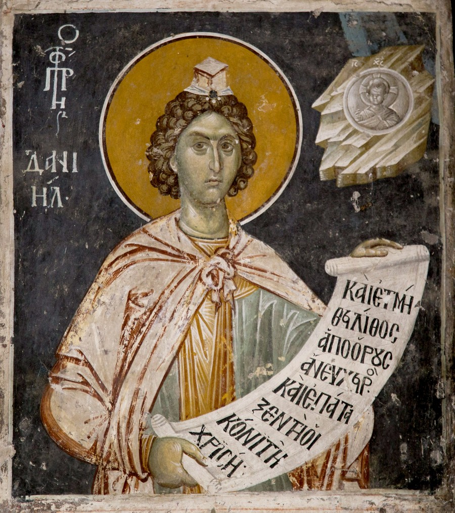 Не менѣе знаменательна въ отношеніи къ Рождеству Христову отъ Дѣвы Маріи память пророка Даніила. Онъ предсказалъ о рожденіи Христа отъ неискусомужной Дѣвы подъ образомъ отсѣченія камня отъ горы. О семъ онъ получилъ откровеніе отъ Бога по поводу сновидѣнія, видѣннаго Навуходоносоромъ, но имъ забытаго. Даніилъ не только напомнилъ Навуходоносору и разсказалъ видѣнный имъ сонъ, но и объяснилъ его значеніе. Навуходоносоръ видѣлъ во снѣ огромной величины статую, изображающую человѣка. Голова статуи была золотая, грудь и руки серебряныя, бедра мѣдныя, ноги желѣзноскудельныя. По толкованію Даніила, послѣдовательный порядокъ составныхъ частей статуи и разность ихъ по матеріалу знаменуютъ послѣдовательную смѣну четырехъ земныхъ царствъ и разныя свойства ихъ. Первое царство, по толкованію Даніила, есть Вавилонское. Оно знаменуется золотою главою: Вавилонъ блисталъ могуществомъ и богатствомъ. Грудь и руки статуи, сдѣланныя изъ серебра, означали другое царство, настолько низшее Вавилонскаго, насколько серебро ниже золота. Даніилъ не назвалъ этого царства по имени, но достовѣрно, что подъ нимъ разумѣется Мидоперсидская монархія. Мѣдныя части статуи означали третье царство, которому также суждено было преобладающее владычество надъ землею. Подъ нимъ разумѣется Греческая монархія, основанная Александромъ Македонскимъ, которая съ неимовѣрною быстротою уничтожила Персидское царство и стала господствовать надъ міромъ. При жизни своего основателя она представляла нераздѣльное цѣлое, но при его преемникахъ она раздѣлилась на нѣсколько самостоятельныхъ царствъ. Главными и болѣе сильными въ ряду ихъ явились царство Египетское, управлявшееся Птоломеями, и Сирійское, бывшее подъ владычествомъ Селевкидовъ. Желѣзно-скудельная часть истукана знаменовала четвертое царство, Римское. Оно отличалось желѣзною крѣпостію въ первую пору своего существованія, на что указывали желѣзныя голени; затѣмъ, вслѣдствіе междоусобныхъ войнъ и враждебнаго отношенія къ Риму завоеванныхъ племенъ, оно значительно ослабѣло, на что указывала скудельная (глиняная) часть въ составѣ истукана. Далѣе въ изложеніи видѣнія Навуходоносора идетъ рѣчь о разрушеніи статуи отъ паденія на нее камня. Камень отторгся отъ горы безъ содѣйствія рукъ человѣческихъ и разбилъ вдребезги истуканъ и всѣ части его превратилъ въ плеву, разсѣянную вѣтромъ. Подъ этимъ камнемъ, по толкованію Даніила, разумѣется новое царство, противоположное четыремъ помянутымъ царствамъ. Всѣ они были идолопоклонническія. Всѣ они, какъ идолопоклонническія, находились подъ властію князя міра – діавола. И этой-то власти нанесенъ будетъ ударъ камнемъ, имѣющимъ отторгнуться отъ горы. Этотъ камень есть Христосъ, основатель новаго царства, Который и въ другихъ мѣстахъ ветхозавѣтнаго писанія называется камнемъ и притомъ краеугольнымъ (Пс. 117, 22; Исаіи 28, 16). Самъ Христосъ ветхозавѣтныя пророчества о краеугольномъ камнѣ относитъ къ Себѣ, выражая сожалѣніе, что симъ камнемъ пренебрегли невѣрующіе Іудеи (Мат. 21, 22). Равно и апостолы относили тоже пророчество ко Христу (Дѣян. 4, 11; 1 Петр. 2, 6; Рим. 9, 39), разумѣя Его подъ камнемъ въ томъ смыслѣ, что на Христѣ, какъ на краеугольномъ камнѣ, основана Церковь (Еф. 2, 20). А что значитъ то, что камень, имѣющій сокрушить царство князя міра сего, отторгнется отъ горы безъ участ