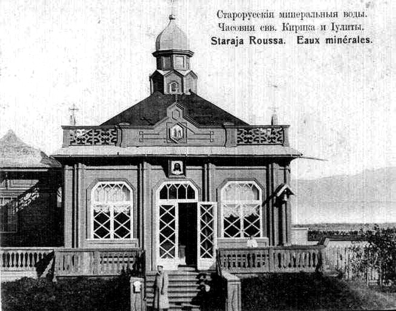 Въ Старой Руссѣ, въ курзалѣ-мѣстечкѣ, гдѣ собираются больные, находятся двѣ часовни – новая каменная и старая деревянная.