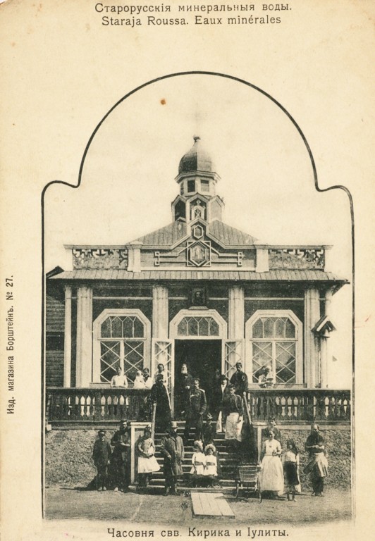 Часовня Кирика и Иулитты на Воронцовском источнике в г. Старая Русса, возведенная в 1-й четверти XIX в в память обретения на этом месте иконы свв. Кирика и Иулиты. Над входом в часовню находится икона Нерукотвореннаго Спаса. В 1914 г. на месте этой деревянной часовни была возведена каменная, устроена в русском стиле 17-го столетия. (фото)