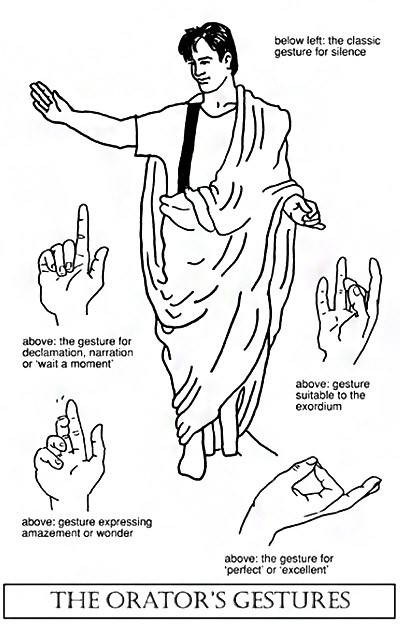 Хирономия (греч. χειρονομία – «жестикуляция», в буквальном переводе «закон руки») – условная система жестикуляций, применявшихся в мимическом искусстве, в традиционной риторике или ораторском искусстве, а также в древних музыкальных культурах для управления хором до изобретения дирижерской палочки. Эффективное использование жестов, с использованием голоса или без него, – это древняя практика, которая была развита и систематизирована греками и римлянами. Различные жесты имели общепринятые значения, которые были понятны либо представителям определенных классов или профессий, либо широкой аудитории драматических и ораторских выступлений.