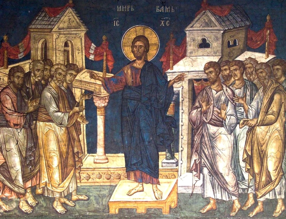 Пріиде Іисусъ и ста посреди ихъ, и глагола имъ: миръ вамъ. (Іоан. 20, 19).