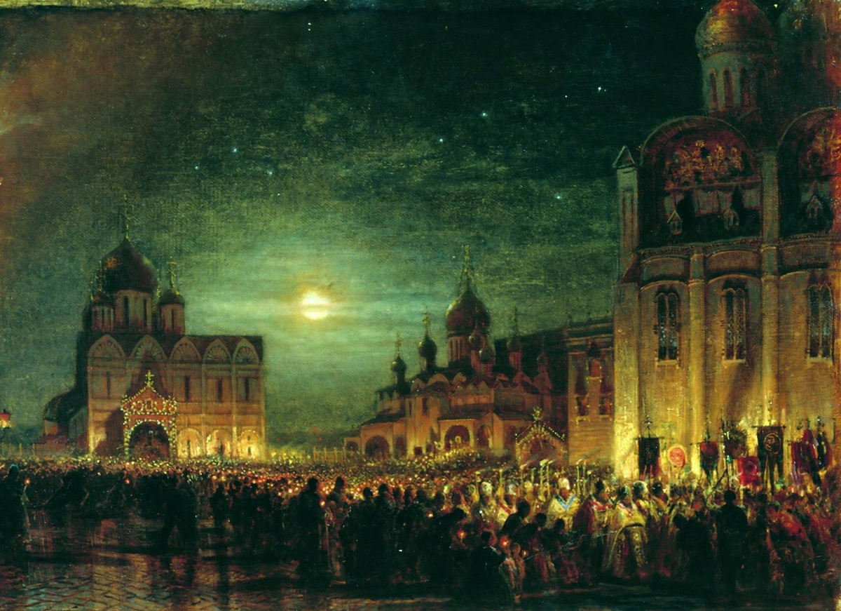 Это слово, этотъ побѣдоносный пасхальный призывъ Божествсннаго Златоуста отъ временъ древнѣйшихъ и до послѣднихъ дней не былъ призывомъ напраснымъ. Радостная вѣсть воскресенія воспринималась вѣрующими, и даже маловѣругошими, не только, какъ воспоминаніе о давно происшедшемъ священномъ событіи, но и какъ вновь переживаемое общеніе со Христомъ–Побѣдителемъ, какъ предвкушеніе того пріискреннѣйшаго единенія сь Нимъ въ небесномъ раѣ, которое обѣщано вѣрующему. Вотъ почему святые угодники именуютъ праздникъ Пасхи великимъ таинствомъ.