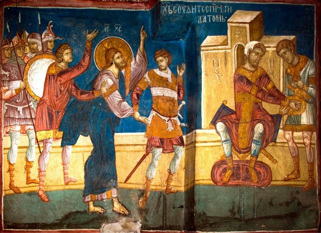 Но явленіе скоро проходитъ; все оканчивается тѣмъ, что Пилатъ предаде Іисуса разсвирѣпѣвшимъ обвинителямъ Его, да распнется (Іоан. 19, 16). Что же это значитъ? Отчего Пилатъ, по-видимому, стоявшій за правду, такъ скоро уступилъ требованію явной и вмѣстѣ ужасной неправды? Недоставало ли у него власти для того, чтобы поступить по своему мнѣнію? Но онъ самъ говорилъ неправедно Обвиняемому: не вѣси ли, яко власть имамъ распяти Тя и власть имамъ пустити Тя (Іоан. 19, 10). Не перемѣнилось ли подъ конецъ мнѣніе его о невинности Судимаго? Но онъ, въ заключеніе всего суда, торжественно засвидѣтельствовалъ о Немъ, какъ о праведникѣ: пріемъ воду, умы руцѣ предъ народомъ, глаголя: неповиненъ есмь отъ крове праведнаго сего: вы узрите (Мѳ. 27, 24). Почему же онъ жертвуетъ и властію, и правымъ сознаніемъ своимъ желанію такихъ людей, которые водились самыми беззаконными побужденіями и хотѣли совершить самое страшное злодѣяніе?