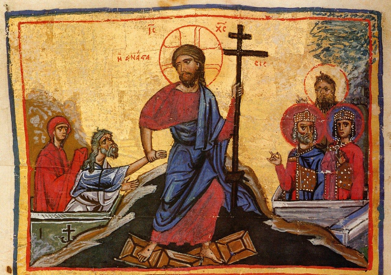 Благовременно нынѣ воззвать всѣмъ съ блаженнымъ Давидомъ: кто возглаголетъ силы Господни, слышаны сотворитъ вся хвалы Его (Псал. 105, 2)! Ибо вотъ наступилъ вожделѣнный для насъ и спасительный праздникъ, день Воскресенія Господа нашего Іисуса Христа – основаніе мира, вина примиренія, разрушеніе браней, истребленіе смерти, побѣда надъ діаволомъ. Нынѣ человѣки совокупились съ ангелами, и обложенные тѣломъ возносятъ пѣсни вмѣстѣ съ безтѣлесными силами. Нынѣ низложено торжество діавола; нынѣ расторгнуты узы смерти, уничтожена адова побѣда; нынѣ благовременно опять произнесть этотъ пророческій гласъ: гдѣ ти, смерте, жало, гдѣ ти, аде, побѣда (Осіи 13, 14. 1 Кор. 15, 55)? Нынѣ Господь нашъ Христосъ сокрушилъ врата мѣдныя и упразднилъ самое лице смерти. Что говорю лице? – измѣнилъ самое ея имя: ибо она теперь называется не смертію, но успеніемъ и сномъ. Прежде пришествія Христова и домостроительства креста, самое имя смерти было страшно, и первый человѣкъ, какъ великое наказаніе, услышалъ слѣдующій приговоръ: въ оньже аще день снѣси, смертію умреши (Быт. 2, 17). Смертію называлось не только разлученіе души отъ тѣла, но и самый адъ. Ибо слушай, что говоритъ патріархъ Іаковъ: сведете старостъ мою съ печалію во адъ (Быт. 42, 32); и пророкъ: адъ разверзе уста своя (Ис. 5, 14); и другой пророкъ: избавилъ ecи мя отъ ада преисподнѣйшаго (Псал. 85, 13). Но поелику Христосъ Богъ нашъ принесенъ въ жертву и явилось Воскресеніе, то человѣколюбецъ Господь уничтожилъ эти имена, и ввелъ въ нашу жизнь новый и чудный законъ. Исходъ изъ сей жизни называется уже не смертію, а успеніемъ и сномъ. Откуда это видно? Слушай, что говоритъ Христосъ: Лазарь другъ нашъ успе, но иду, да возбужу его (Іоан. 11, 11). Ибо какъ намъ легко разбудить и возстановить спящаго, такъ и общему всѣхъ Владыкѣ воскресить изъ мертвыхъ.