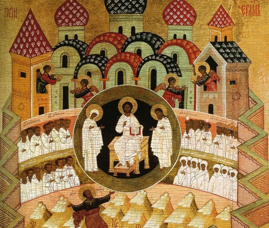 «Свѣтися, свѣтися новый Іерусалиме! Слава бо Господня на тебѣ возсія: ликуй нынѣ и всселися Сіоне! Ты же Чистая красуйся Богородице о возстаніи Рождества Твоего» (Канона на Пасху пѣснь 9-я, ирмосъ).