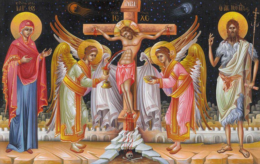 Чтобы возможно яснѣе представить смыслъ искупительной крестной жертвы, св. Димитрій Ростовскій обращается къ слѣдующему сравненію. Добрый человѣкъ, видя своего любимаго друга, уязвленнаго смертоноснымъ мечемъ, слышитъ отъ врачей, что несчастный будетъ живъ въ одномъ лишь случаѣ, если возмется кто-либо высосать изъ раны ядъ и умереть отъ того... Тогда онъ самъ рѣшается высасывать ядъ изъ раны, самъ умираетъ, а друга спасаетъ цѣною своей жизни. Такъ и Господь поступилъ съ нами, уязвленными смертоноснымъ ядомъ грѣха. Онъ приложилъ уста Сына Своего къ язвѣ естества нашего. И Богъ Слово, соединившись съ уязвленнымъ естествомъ нашимъ, извлекъ изъ него на Себя грѣховный ядъ...