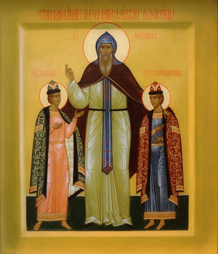 Память св. благовѣрныхъ князей Ѳеодора, Давида и Константина, Ярославскихъ чудотворцевъ, празднуется трижды въ годъ: а) 19-го сентября, въ день представленія св. благовѣрнаго князя Ѳеодора, а вмѣстѣ съ нимъ и чадъ его Давида и Константина, неизвѣстно когда скончившихся; б) 5 марта, въ день обрѣтенія и перенесенія мощей ихъ изъ-подъ сводовъ Входо-Іерусалимской церкви въ Преображенскую церковь, и в) 22 іюня, въ день переложенія мощей ихъ въ кипарисную раку святителемъ Димитріемъ, митрополитомъ ростовскимъ, отъ котораго установлено праздновать сей день съ 1704 года (Грам. св. Димитрія въ ризницѣ Спасскаго монастыря). (Прот. А. Израилевъ «Нетлѣнныя мощи святыхъ благовѣрныхъ князей Ѳеодора и чадъ его Давида и Константина, въ Ярославскомъ Спасо-Преображенскомъ». Ярославль 1900. С. 18-19.).