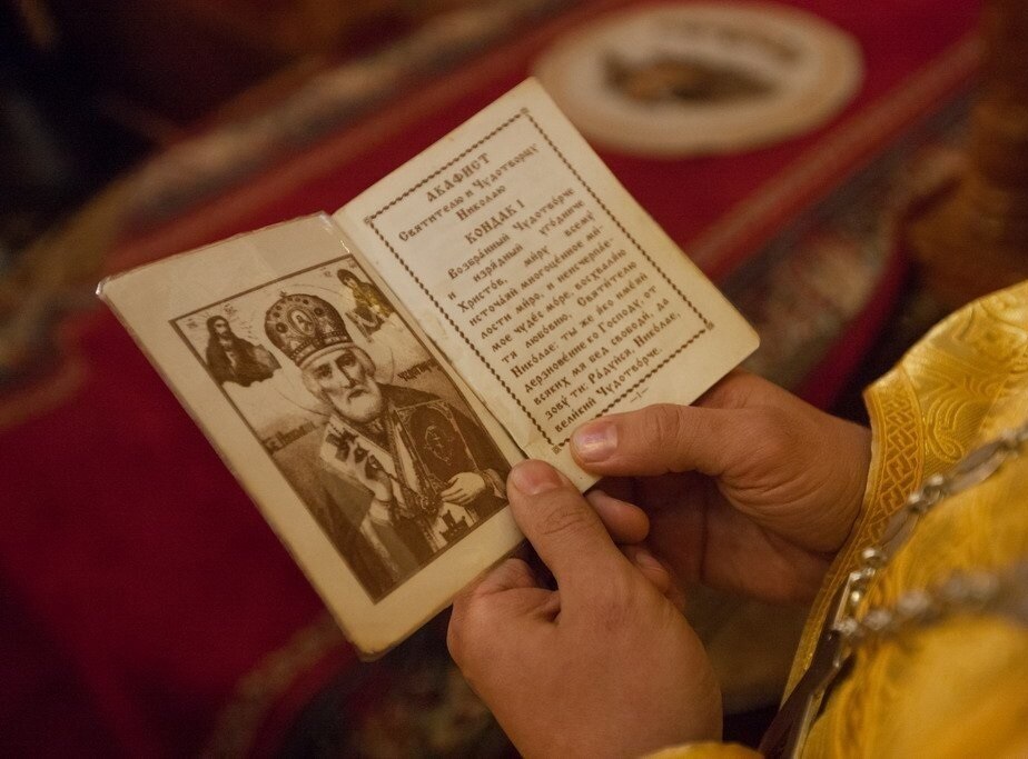 «Спасти хотя душу, плоть твою духови покорилъ еси воистинну, отче нашъ Николае: молчаньми бо прежде и бореньми съ помыслы, дѣянію богомысліе приложилъ еси, богомысліемъ же разумъ совершенъ стяжалъ еси, имже дерзновенно съ Богомъ и ангелы бесѣдовалъ еси, всегда вопіющи: аллилуія» (Кондакъ 10).