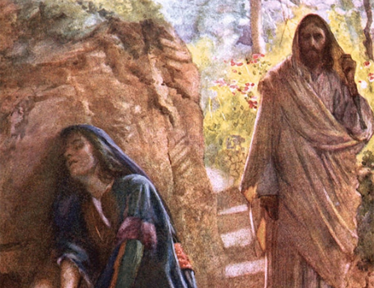 Но – близъ Господъ всѣмъ ищущимъ Его, всѣмъ призывающимъ Его во истинѣ (Пс. 144, 18). Внезапный шорохъ позади заставляетъ Марію оглянуться: она видитъ человѣка, принимаетъ его за вертоградаря, и – готовая вопрошать даже камни о возлюбленномъ Господѣ своемъ, въ самозабвеніи отъ великой печали, обращается съ вопросомъ къ нему: господи, аще ты ecи взялъ Его, повѣждь ми, гдѣ ecи положилъ Его, и азъ возьму Его (20, 15). Маріе! кротко взываетъ къ ней Господь тѣмъ голосомъ, который столько разъ радостно отзывался въ слухѣ ея... Раввуни! (учитель мой) восклицаетъ она, и съ восторгомъ повергается къ ногамъ Іисусовымъ! О, кто опишетъ блаженство этой любящей души въ сію минуту! Поистинѣ, всѣ радости земныя ничто предъ такою радостію! Теперь Магдалина стояла предъ упраздненнымъ гробомъ Спасителя съ слезою на глазахъ и неизглаголанною радостію въ сердцѣ, блаженная и счастливая такъ, какъ бы находилась въ саду едемскомъ. Теперь утѣшенія Божіи возвеселили душу ея – тѣ утѣшенія, ихже око невидѣ и ухо не слыша и на сердце человѣку не взыдоша. Они были наградою любви ея.