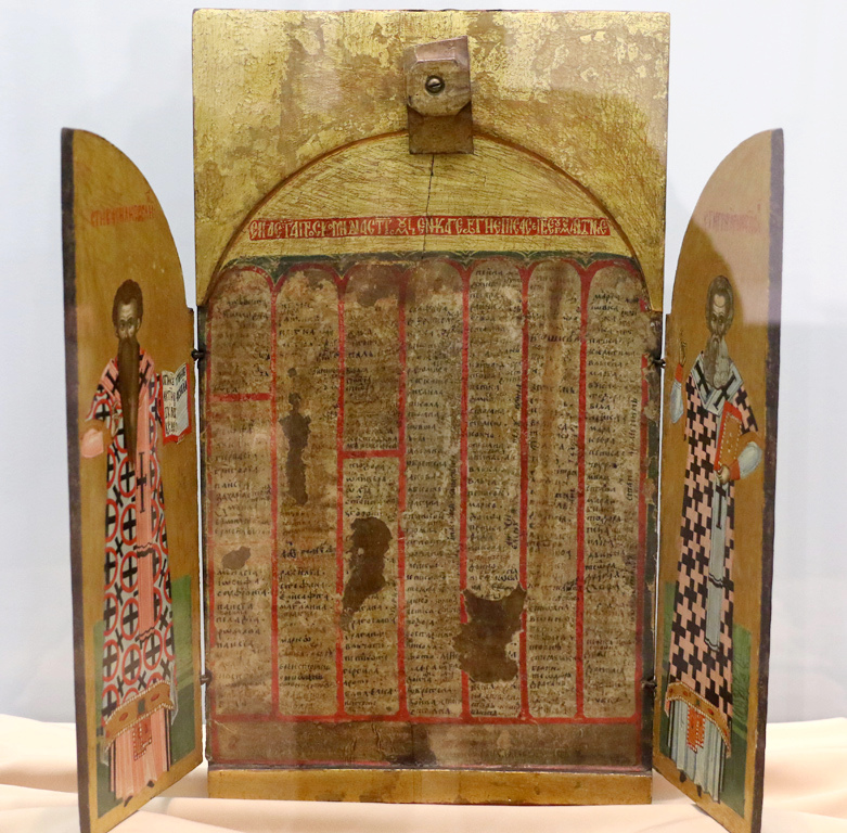 Триптих-помянник, находящийся в Кремиковском монастыре во имя вмч. Георгия Победоносца близ Софии, на средней части которого написан помянник, а на боковых с внешней стороны находятся сцены из цикла «Благовещение», с внутренней – образы святителей Василия Великого и Григория Богослова.