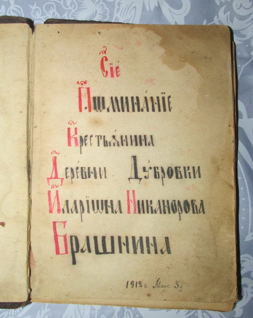 Старинные рукописные помянники (датированы 1900 и 1912 гг.) прихожан Крестовоздвиженского храма – семьи Брашниных, сохраненные их потомками. (отсюда).