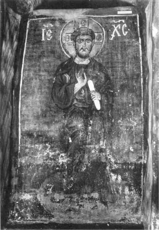 «Христос Иерей». Фреска в нише сопрестолия (под нижним окном алтарной апсиды) церкви Спаса на Нередице близ Новгорода. 1199 г.