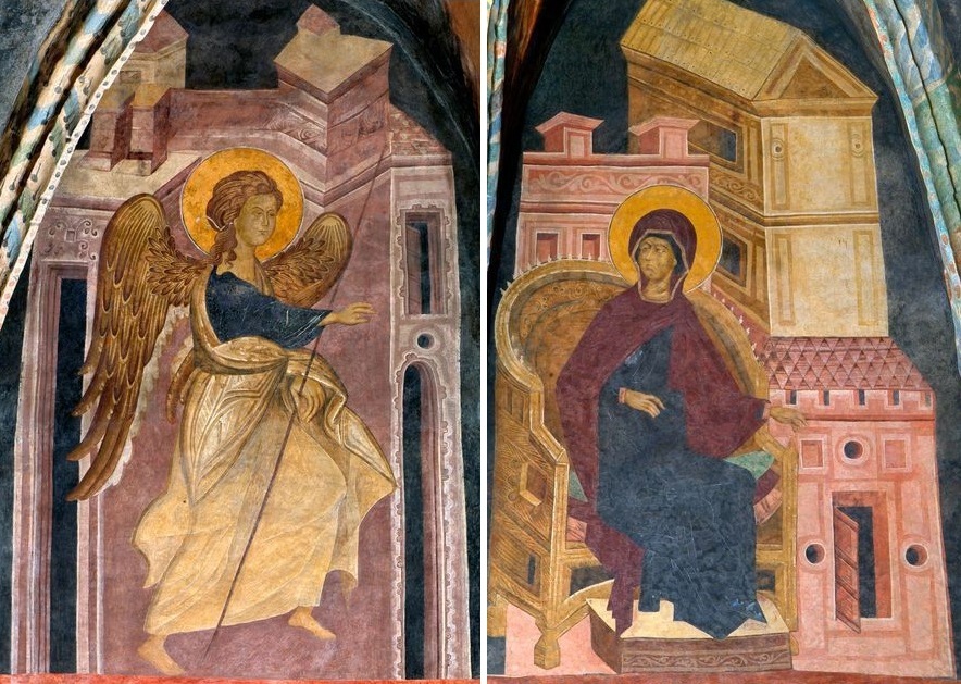 Благовещение «у колодца». Роспись церкви Церковь Пресвятой Богородицы Перивлептос в Охриде, Македония. Ок. 1294/95 в.