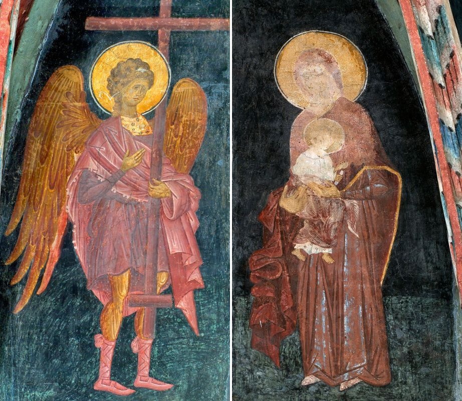 Благовещение «с рукодельем». Фреска церкви св. архидиакона Стефана в Кастории, Греция. Рубеж XII-XIII вв.